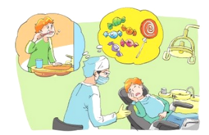 Mike has a _____________.He __________ eat anything. He _________ ________ eat too many sweets. He should ___________ _________ ________ in the morning and before bedtime.