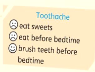 A: You _______ _______ sweets and _______ before bedtime.
