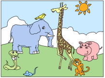 We are in the zoo. Look at the elephant. It’s 1.________ (small/big). The mouse is 2.________ (small/big). This is a snake(蛇). Look! That is a giraffe. It’s 3. ________ (short/tall). The pig is 4.________ (fat/thin), but the monkey is thin. They are all our friends!