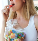 B. The woman likes eating candy.