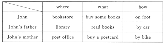 假如你是約翰,根據(jù)下面的表格,寫一寫你和家人平時(shí)都會(huì)去哪里,去做什么,