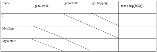 仔細(xì)閱讀表格中的內(nèi)容,介紹你和家人的出行情況。(不少五句話)(提示詞:bybike,bybus,byplane,on foot)