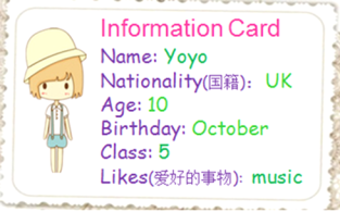 【題目】下面是一張Yoyo的個(gè)人信息卡片。假設(shè)你是Yoyo ,請(qǐng)按照卡片中的內(nèi)容寫一篇自我介紹。